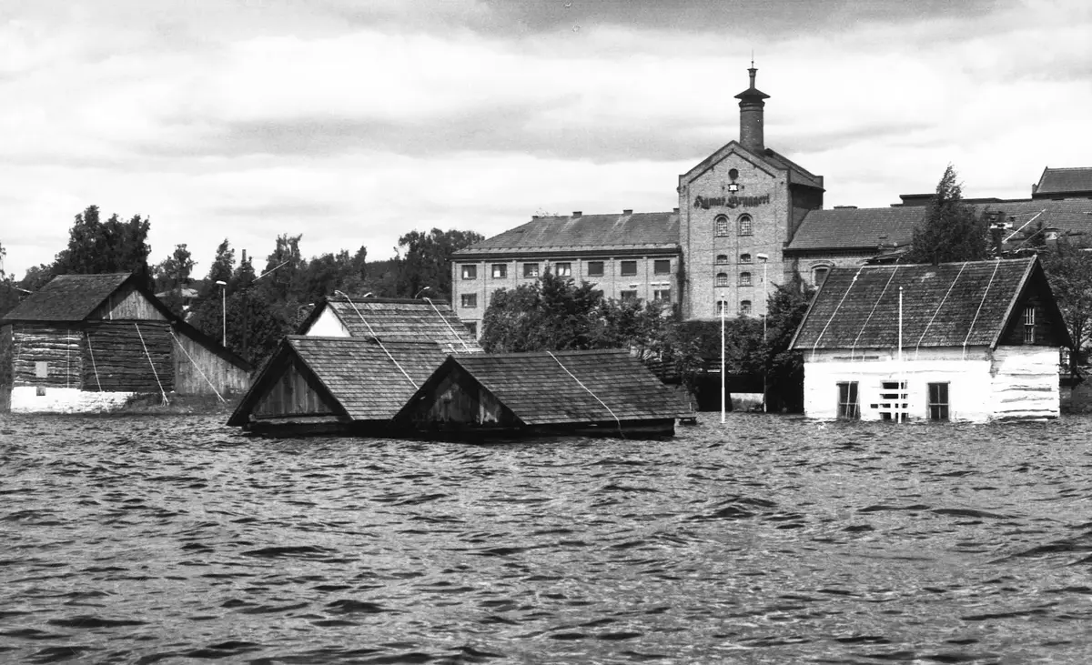 Flooded museum buildings in 1995. Jan Haug / Anno Domkirkeodden