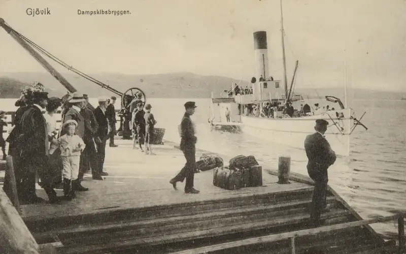 Kl. 10.30 - Kom og opplev stemningen og se utvandrerne dra av sted! På Gjøvik vil arrangementet skildre bryggeliv med sangkor og spillemenn, utstilling om Gjøvik på 1800-tallet og en liten fortelling om utvandringen fra vårt område. Familien Tostensen Gullord som utvandret fra Biri i 1846, ankommer med hesteskyss: reiseklare og spente. De var 10 personer.Vi skal vinke dem farvel!
