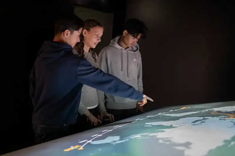 Med utgangspunkt i vår nye utstilling «Ukjent landskap» får elevene utforske en utstilling om migrasjon, oppleve ekte historier om enkeltmennesker som forlot Norge og søkte nye liv i Amerika, og selv prøve seg som museumsverter!
